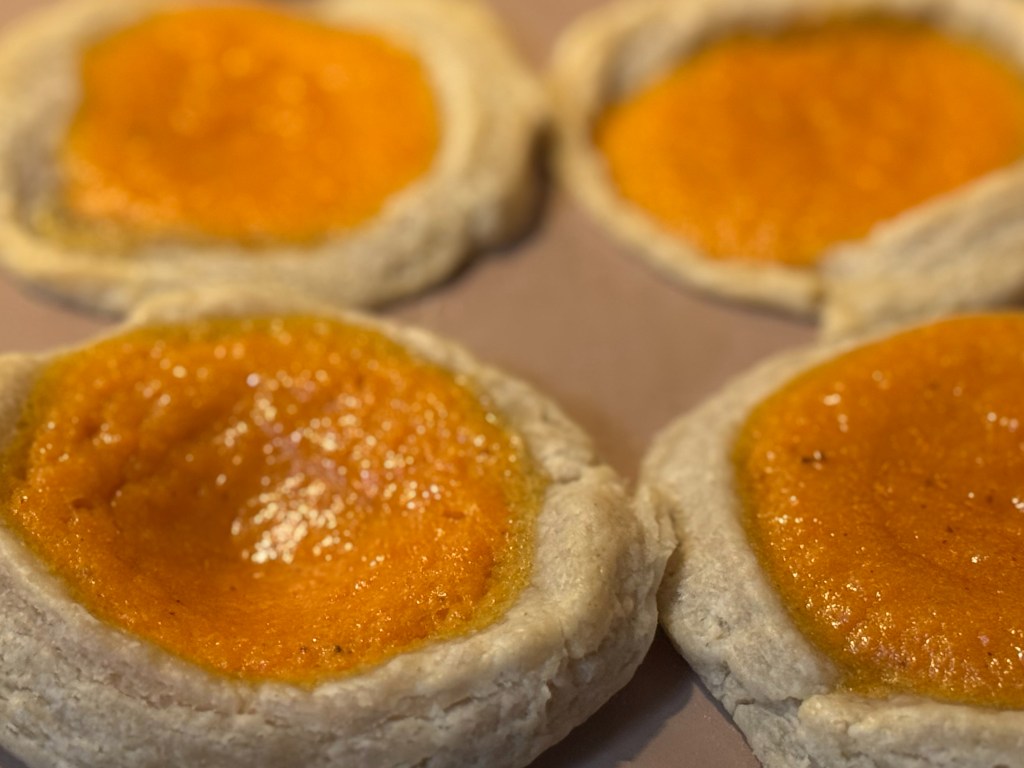 - Mini Sweet Potato Pies – Sweet potato filling baked in a sourdough discard pie crust