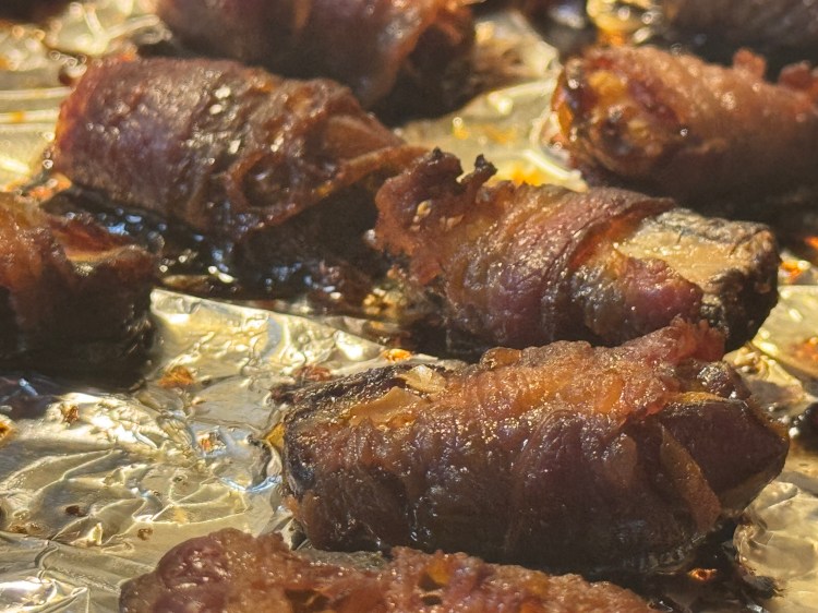 - Date Poppers – Baked dates stuffed with cream cheese and wrapped in bacon