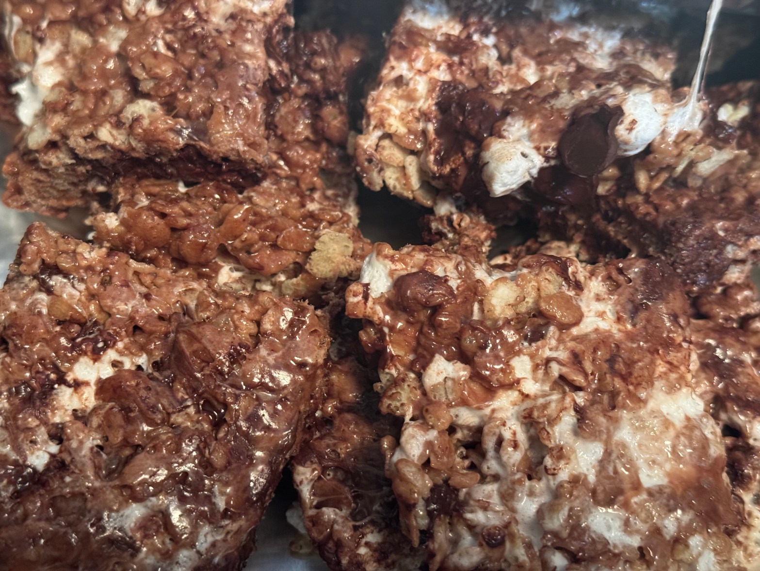 - Then, fold in the remaining mini marshmallows and dark chocolate, letting them melt slightly into the mixture.
