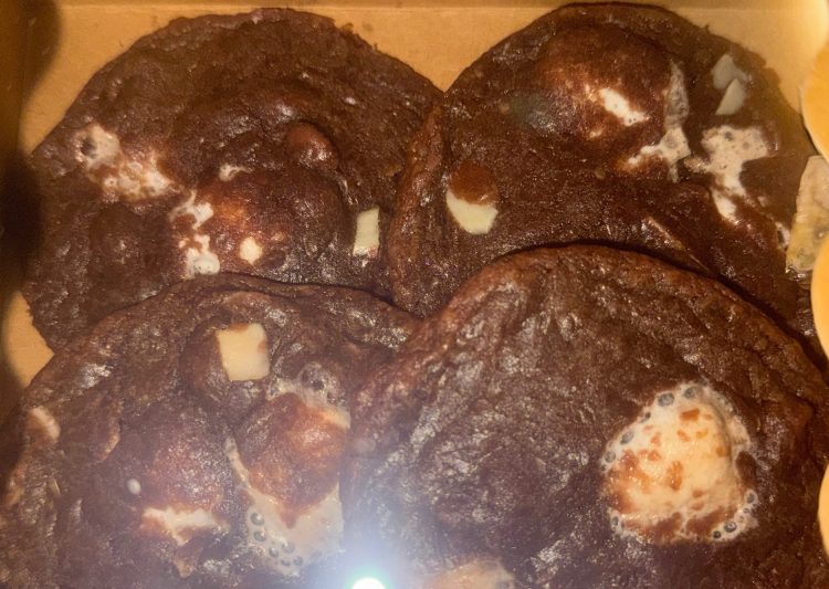 A rich chocolate cookie loaded with chocolate chips, almonds, and marshmallows – just like the ice cream.